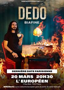 Loin des clichés sur le métal, Dedo poursuit le dialogue entamé avec son public dans ses deux précédents spectacles. Sans aucun tabou, il continue de nous livrer ses pensées les plus personnelles, avec un sens de l’absurde ou de l’image toujours aussi efficace. Dernière date parisienne !