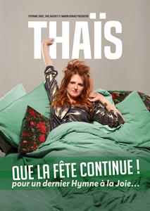 Apres une tournée dans toute la France et un triomphe à la Cigale, Thaïs joue en direct à la TV au Theatre du Gymnase à Paris, son spectacle : Que la fête continue ! À cette occasion, elle offre au Public Parisien, une représentation inédite.