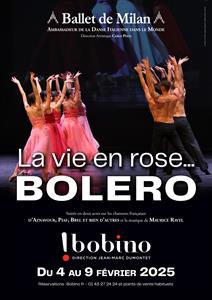 Titre phare du Ballet de Milan, La vie en rose fait partie des chorégraphies emblématiques de la Compagnie. Un travail ironique et nostalgique, joyeux et passionnant, sur les plus belles chansons françaises. Pour le deuxième acte, la compagnie illustre le célèbre Boléro de Maurice Ravel.