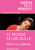 Comment faire partie d’un groupe quand on est en marge ? Comment faire taire la peur de mal faire, la peur d’être soi-même ? Comment s’adapter sans renoncer à ses rêves ? A partir de sa propre expérience, Agathe de la Boulaye a imaginé et écrit Le monde selon Bulle, où déambule, entre enfance et adolescence, un personnage allègre et impertinent.