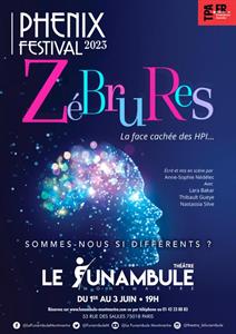 « Zèbres », « HPI », « Surdoués », « Précoces », tous ces termes recouvrent une réalité mal connue et bien souvent erronée. À travers ce spectacle, écrit à partir de divers témoignages, il s’agit de livrer une vision sensible et « de l’intérieur », en croisant les destins de divers personnages.