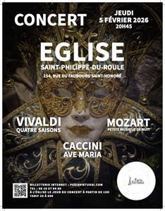 Concert de l'Orchestre Paris Virtuosi sur Les Quatre Saisons de Vivaldi et Petite musique de nuit, de Mozart et l'Ave Maria de Caccini.