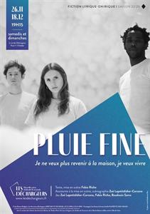 Pluie fine est l’itinéraire d’un amour fraternel aux portes de l’au-delà. Après avoir nourri trop d’espoirs dans ce monde, Aya, plongée dans le coma entre la vie et la mort, se retrouve dans la salle d’attente. C’est alors que son voyage initiatique commence. À partir de 10 ans.