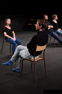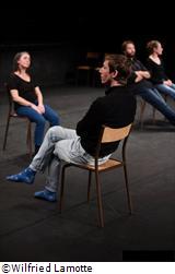 Arrête, je vois la parole qui circule dans tes yeux est une folle traversée du langage. Sur le plateau, deux comédiennes en perpétuelle transformation du corps et de la voix entrainent les spectateurs dans un flux continu de postures, de situations, de mots types, de personnages-types, autant d’excursions imaginatives, saisies au vol.