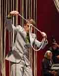 Une aérienne dans ses cordes et une harpiste dans les siennes. Ariane(s) : un face à face acrobatique et musical, une traversée labyrinthique faite d’ascensions, de traversées, de détours et parfois d’emmêlements, une quête.