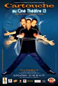 Cartouche nous séduit par des spectacles endiablés, saupoudrés d'humour et d'émotion. A travers la danse, le mime et la comédie (trois disciplines qu'il maîtrise si bien), Cartouche nous invite à partager sa joie de vivre, ses doutes, ses coups de gueule et sa façon toute personnelle de « terrasser ses démons ».Pour lui une seule thérapie : l'optimisme.