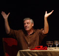 La scène est occupée par une table où des convives désormais partis ont partagé nourritures spirituelles et terrestres. L’homme resté seul ne peut pas dormir, il poursuit ou entreprend la conversation avec les “traces” des convives. Il n’est pas triste, au contraire, il exulte… mais de saines et saintes colères, des colères joyeuses. Il “décharge sa rate” dirait Molière.