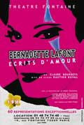 Avec ces Ecrits d’amour, Bernadette Lafont nous entraîne dans le délire d'écrire de personnages qui s'inventent d'impossibles amours. Claude Bourgeyx en tire une belle leçon d'humour, avec juste ce qu'il faut de cruauté pour nous amener à rire de nos désillusions, sans jamais se moquer des facéties du désir.