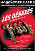 Virtuoses inspirés du saxophone dans tous ses éclats musicaux et sonores, Les Désaxés font depuis 1990 le bonheur des salles françaises et étrangères avec leur humour musical débridé et toujours inventif. Attention au virus de la désaxose, un « Delirium très sax », où la folie musicale et scénique s’empare du public, des saxophones et... des saxophonistes.