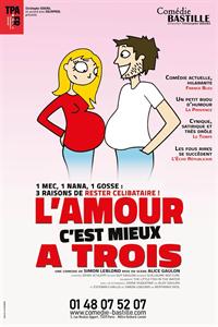 1 mec, 1 nana, 1 gosse, 3 raisons de rester célibataire. L'Amour c'est mieux à trois, une comédie actuelle et sexy pas du tout mais alors pas du tout cul-cul la praline.