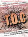 TOC est une création qui rassemble divers textes de Daniil Harms autour des troubles obsessionnels, qui, poussés à l’extrême, parlent de notre quotidien. Sur un plateau noir évoluent cinq comédiens omniprésents. Dans un univers surréaliste, la rencontre de ces personnages entraîne une rupture violente et brutale de leur comportement, liée à leur état nerveux.