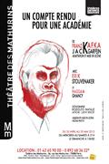 A la demande des académiciens, un homme singe baptisé Pierre Rouge tente d’évoquer son passé simien. Originaire de la Côte de l’Or, Pierre le Rouge a été capturé lors d’une expédition de chasse menée par Karl Hagenbeck. Transporté sur un bateau, dans une cage, le singe cherche désespérément une issue : la seule qui s’ouvrira à lui est celle de se métamorphoser en homme.