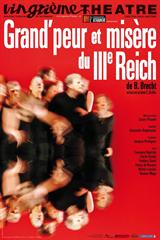 Grand’peur et misère du IIIe Reich est un spectacle de troupe autour d’un grand texte défendant une parole nécessaire adressée à tous. Pas de lourdeur dans un monde en suspens au-dessus du vide et de l’effroi, mais la vitalité de la survie incarnée ici par la poésie du clown. Mise en scène de Cécile Aziliz.