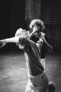 Talons contre le sol et lèvres contre le micro, le danseur François Chaignaud et le beatboxer Aymeric Hainaux s’affrontent, se réconfortent et produisent une poésie à la fois percussive et mélancolique.