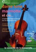 Dès 1 an. Le chat Popov a disparu. Dame-lune et sa compagne l'espiègle Bertille partent à sa recherche. Elles le retrouveront grâce au violon magique. Un spectacle musical qui mêle théâtre, chant, violon alto, danse et marionnettes.