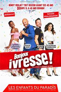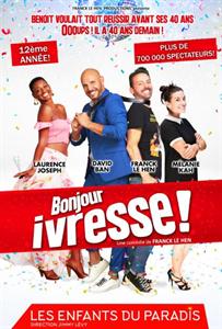 Après 15 ans de succès, retrouvez Bonjour Ivresse ! La comédie délirante de Franck Le Hen est de retour sur Paris ! Benoît retrouve dans son coffre à jouets une liste de choses qu’il s’était promis de faire avant ses 40 ans. Problème : il les fête demain. Une comédie décomplexée, aux répliques assassines et au rythme survolté ! Avec Franck Le Hen, Clair Jaz, Edouard Collin et Izabelle Laporte. À partir de 12 ans