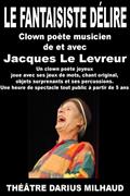 Le Fantaisiste Délire de et avec Jacques Le Levreur. Un clown poète joue avec ses jeux de mots, chant original, objets surprenants et ses percussions. A partir de 5 ans.