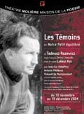Les Témoins ou Notre petit équilibre exprime le malaise d’une société basée sur des valeurs matérielles. Ecrite dans les années 60, la pièce est devenue en Pologne emblématique d’un conformisme bon marché et du manque de grandeur de l’homme contemporain.