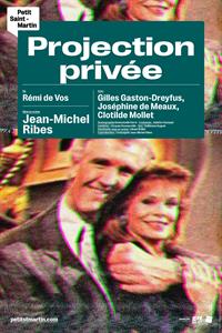 Projection privée met en scène un couple à la dérive. La femme passe ses journées vautrée sur un canapé à regarder la télévision. Pendant ce temps, l’homme s’en va chercher ailleurs ce qu’il ne trouve plus chez lui et ne se gêne pas pour ramener des filles à la maison. Ce soir-là justement, il rentre du Copacabana en galante compagnie.