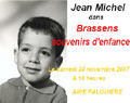 Avez vous envie de vous souvenir ? Les bancs de la classe, la premiere copine, les êtres chers disparus... Avec sa jolie voix et son arpège agréable, Jean Michel vous donne toujours un récital inoubliable des chansons de Georges Brassens. Et aussi... ses textes... Un véritable one man show.