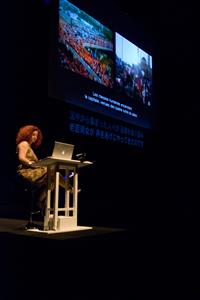 Biokhraphia (2002) est un mot composé qui pourrait être traduit par « vie-délire ». S’y déploie une interview houleuse de l’artiste Lina Majdalanie à propos d’une pièce qu’elle aurait créée avec son partenaire Rabih Mroué. Cette mise en abîme grinçante et loufoque du récit de soi est aussi un manifeste politique et esthétique.