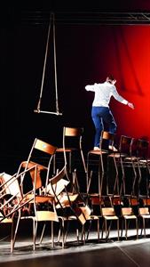 Sans défense et sans apparat, les artistes crient ici leur appétit de vivre, leur désir de faire. Le spectacle ne parle pas du risque. Le risque, c’est le corps même du spectacle.