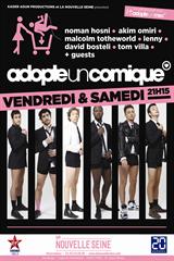 Tour à tour, les artistes se succèdent sur scène pour vous séduire. Ils n’ont que quelques minutes, le temps d’un sketch, pour vous convaincre de les mettre dans « votre panier ». Quand ces sept comédiens ont découvert que l’humour est le critère le plus recherché par les femmes, Adopte Un Comique est né. Tous ont le même objectif : séduire mais surtout faire rire, chacun dans leur style.