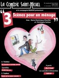 3 Scènes pour un ménage : Une demande en mariage (extrait) de A. Tchekhov, La paix chez soi de Courteline, Léonie est en avance (extrait) de G. Feydeau. " Attention, ce spectacle peut vous faire apprécier le célibat. " Faire une demande en mariage, ce n'est pas simple. Vivre en couple, ça l'est encore moins, alors attendre le premier enfant... Pourtant, l'évidence dans ces 3 scènes de ménage, c'est qu'ils s'aiment, tout simplement.