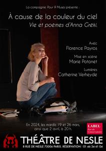 Dans ce seul en scène poétique, Florence Payros fait résonner les mots d’Anna Gréki. La comédienne, avec simplicité et intensité, fait revivre cette poétesse disparue trop tôt.