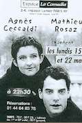 Pendant la période 2000 et 2001, Mathieu Rosaz chante au Théâtre Les Déchargeurs (Paris 1er), à l'Espace La Comedia (Paris 11ème), à Chant'Essonne (en 1ère partie de Nicolas