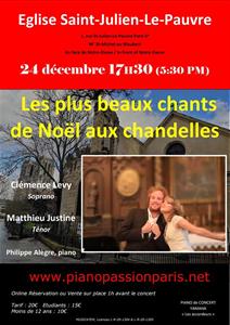 Un concert de Noël aux chandelles par Clémence Lévy, soprano, Matthieu Justine, ténor et Philippe Alègre, piano.