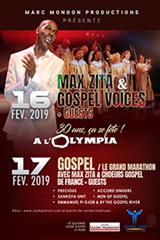 De talentueux choristes sont réunis pour véhiculer le gospel à travers le temps et les âmes sans en oublier la joie de vivre des Caraïbes. Ils interprètent les chants traditionnels de gospel et de nouvelles œuvres composées et arrangées par Max Zita. Deux concerts : Max Zita & Gospel Voices + Guests le 16 février 2019, Max Zita & Choeurs Gospel de France + Guests le 17 février.