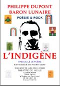 « L'indigène » : Entre théâtre et concert de rock, un one man show poétique, varié et dense, écrit et interprété avec sensibilité, pertinence et humour. La musique de Baron Lunaire, de style pop-rock aux accents alternatifs, se marrie , avec douceur comme avec force, à une poésie envoûtante et drôle, littéraire et accessible.