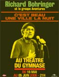 Entre chants et textes, Richard Bohringer, diseur de mésaventures, nous fait rôder dans les rues de New York, vaguer dans les banlieues pluvieuses, dit sa passion pour l’Afrique… L’ensorcelant voyage d’un griot blanc, ça swingue, ça rock, c’est chaud !