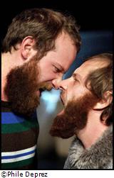 C’est un duo et un duel, un pas de deux construit autour de la compétition cruelle et de l’émulation étonnée et féconde, une figure dansée et chantée. Jakob et Pieter Ampe, frères à la ville, musicien et professeur de voix pour l’un, danseur et chorégraphe pour l’autre, s’observent, se cherchent, se heurtent, s’épuisent dans de véritables jeux de (dé)construction et de course poursuite.