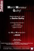 Merci Monsieur Guitry est un spectacle conçu autour de quatre pièces en 1 acte de Sacha Guitry : Un Etrange point d’Honneur, Villa à Vendre, L‘Ecole du Mensonge, et Cigales & Fourmis.