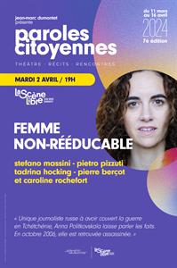 Femme non-rééducable retrace la vie de la journaliste russe Anna Politkovskaïa, figure héroïque de la liberté de la presse, dans un spectacle entre théâtre et musique. À partir de 14 ans.