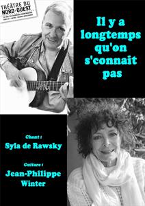 La comédienne et chanteuse Syla de Rawsky interprète ses propres textes mis en musique par Jean-Philippe Winter, qui l'accompagne à la guitare.