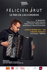 L’accordéon, emblème de Paris et des Années folles, investit le Théâtre Marigny pour une soirée exceptionnelle, porté par l’un de ses plus brillants interprètes : Félicien Brut, accompagné des musiciens classiques les plus talentueux de sa génération que sont le guitariste Thibaut Garcia, le mandoliniste Julien Martineau, le Quatuor Hermès, le contrebassiste Edouard Macarez, l’accordéoniste Domi Emorine ou le clarinettiste Renaud Guy-Rousseau.