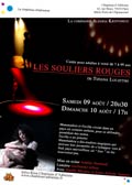 Spectacle tout public à partir de 12 ans. C’est un pays où les enfants sont livrés à l’errance et où certains enfants, pour se défendre, sont obligés d’avoir des pistolets. Favilla en a un. Mammadera, elle, n’en a pas mais elle a des souliers rouges, qu’elle tient de sa maman et qui doivent lui permettre de s’échapper vers le Sud, là où « eux » ne la trouveront pas. Elle veut entraîner Favilla avec elle.