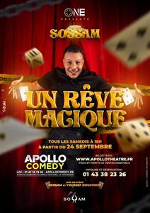 Pour Sossam, la magie est un art qu’il déploie avec une dextérité qui relève du génie. Après des années de pratique et plus de 100 millions de vues sur les réseaux sociaux, Sossam monte enfin sur scène pour un spectacle époustouflant. Un savant dosage de magie et d’émotion dans une suite de numéros sidérants de mentalisme, d’hypnose et de grande illusion.