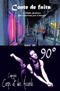 Soirée partagée entre Conte de faits du chorégraphe Malik Boufenara, mélant danse et slam dans un conte urbain original et poétique, et 90°, création de danse contemporaine de la compagnie Corps et des Accords, où les corps en révolte tissent avec la musique un miroir de la nature profonde de l'Homme.