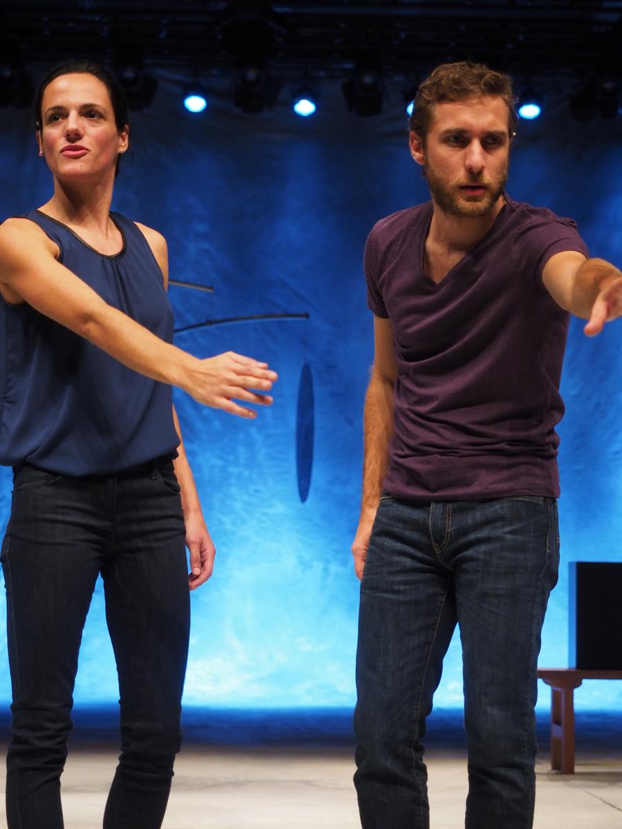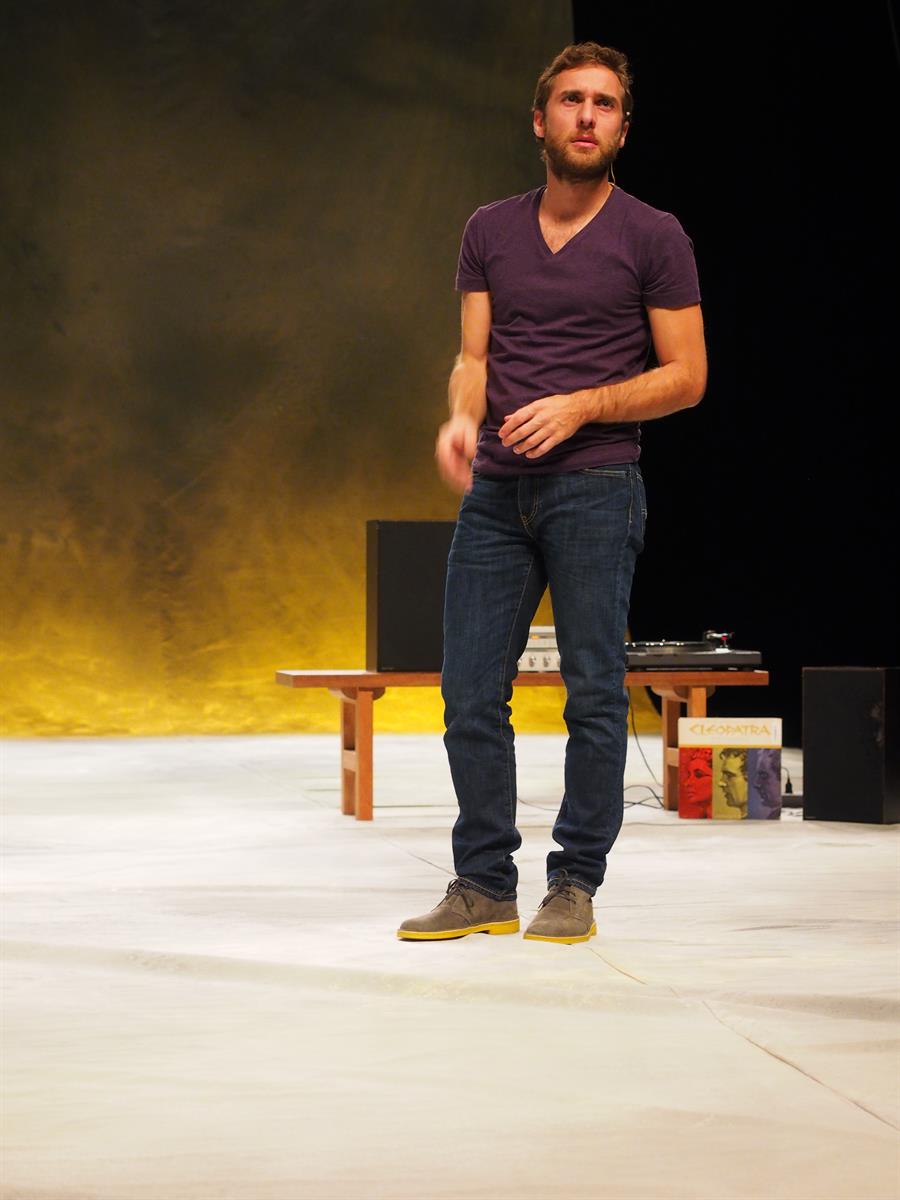 À travers leurs corps et leurs mots, le duo prend vie et leur douce complicité se révèle. Le récit se déploie et la poésie s'installe : l'attirance, la trahison, le déshonneur, la guerre, et bientôt la mort. Et sur les murs, c'est tout le désert et le ciel de l’Égypte qui s'ouvrent devant nos yeux, à travers des mobiles couleurs ocre et bleue, en équilibre instable tout comme leur passion dévorante, sur le fil de l'intime et de la politique, qui les mènera à leur perte.