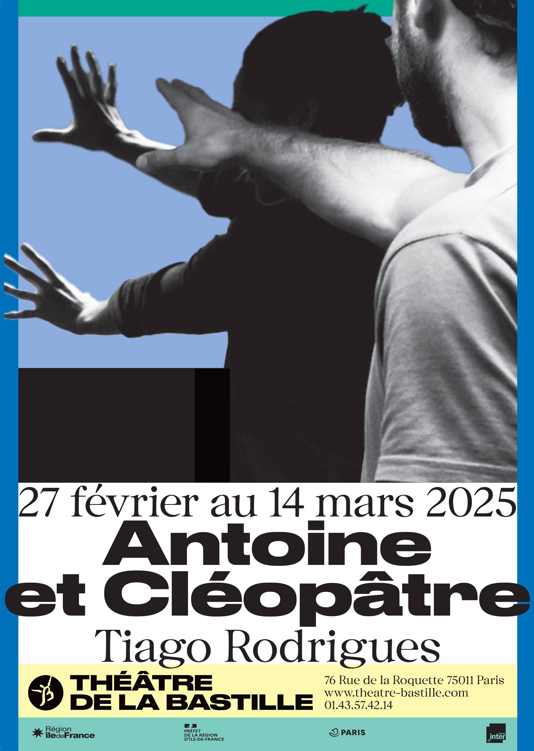Il revient ainsi au Théâtre de la Bastille avec l'une de ses pièces emblématiques. En s’emparant très librement de la légende et de ses héritages, il met en scène un duo de chorégraphes. Sofia Dias et Vítor Roriz jouent et dansent Antoine et Cléopâtre, incarnant l'amour de la politique et inventant une politique de l'amour.