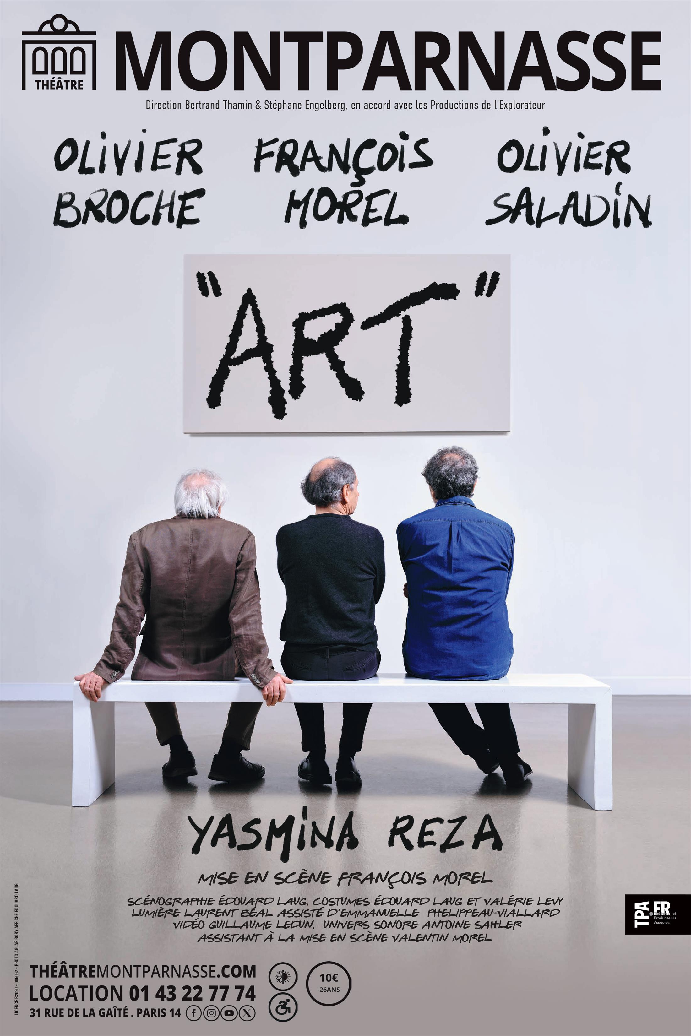Trois amis, très liés depuis plus de quinze ans, voient leur amitié ébranlée lorsque Serge fait l’acquisition d’un tableau blanc. La célèbre pièce de Yasmina Reza est de retour avec François Morel, Olivier Broche et Olivier Saladin.