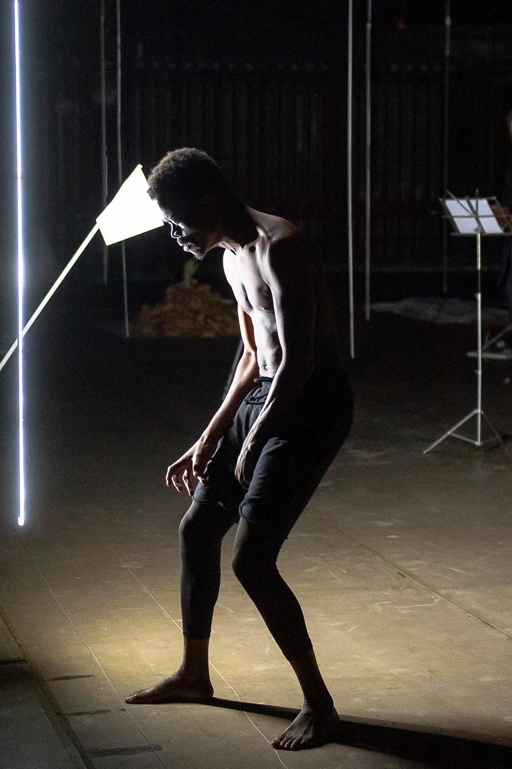 La partition chorégraphique très libre, sans fioriture, n’illustre ni ne commente le texte mais répond et rebondit, en regard d’une langue formidable de rigueur et d’efficacité. Alors que deux subtils danseurs s’y frottent et jouent de l’univers plastique conçu par Denis Mariotte, la musique live de Benoît de Villeneuve et Benjamin Morando délivre nappes électroniques au souffle épique, chœurs éthérés, sons d’atmosphère ou gimmicks obsédants, au sein d’un ingénieux dispositif architectural de lumières signé Yves Gaudin.