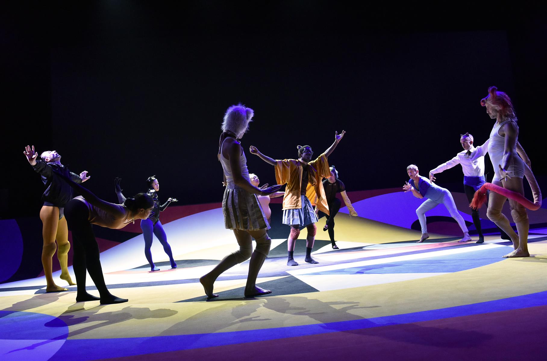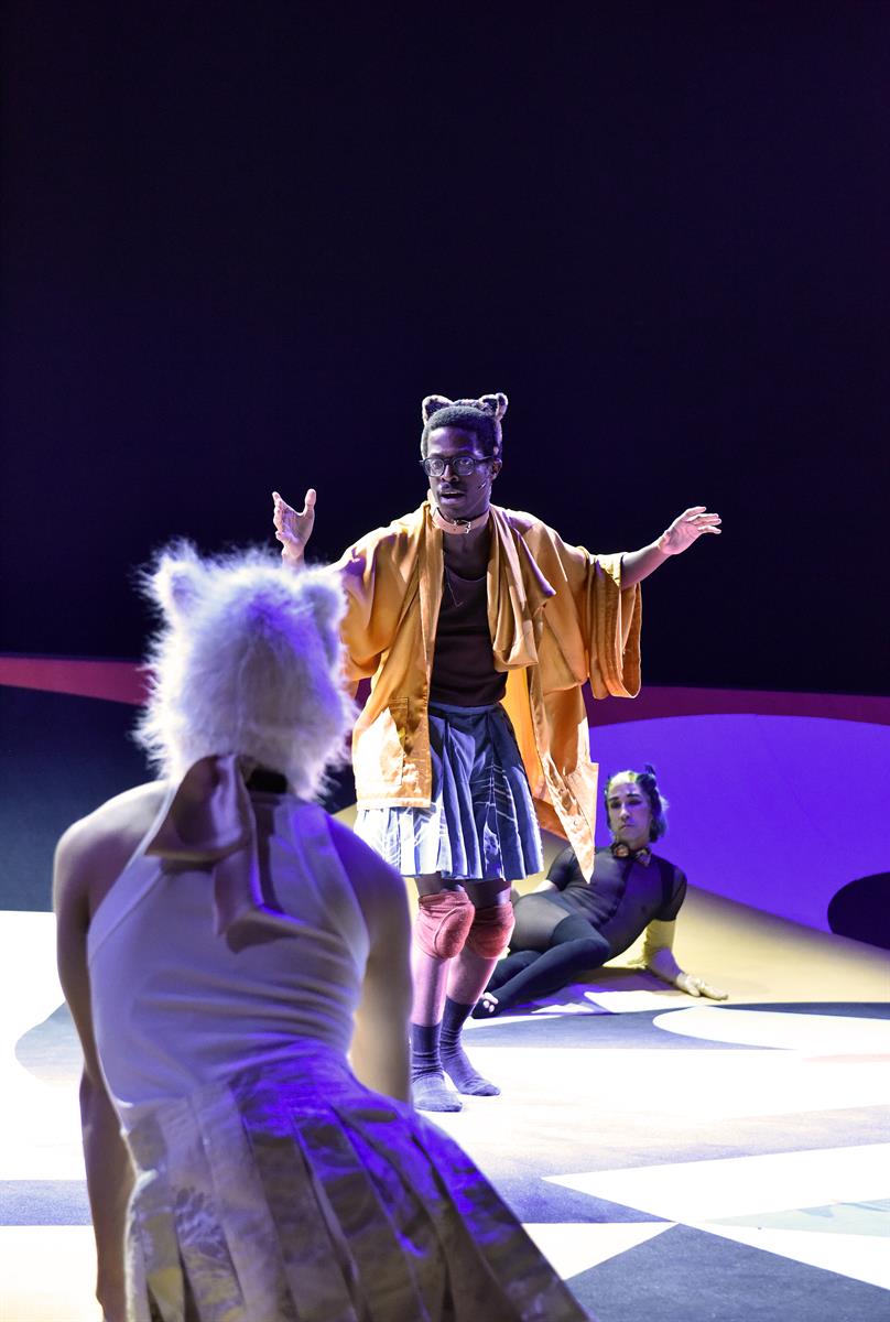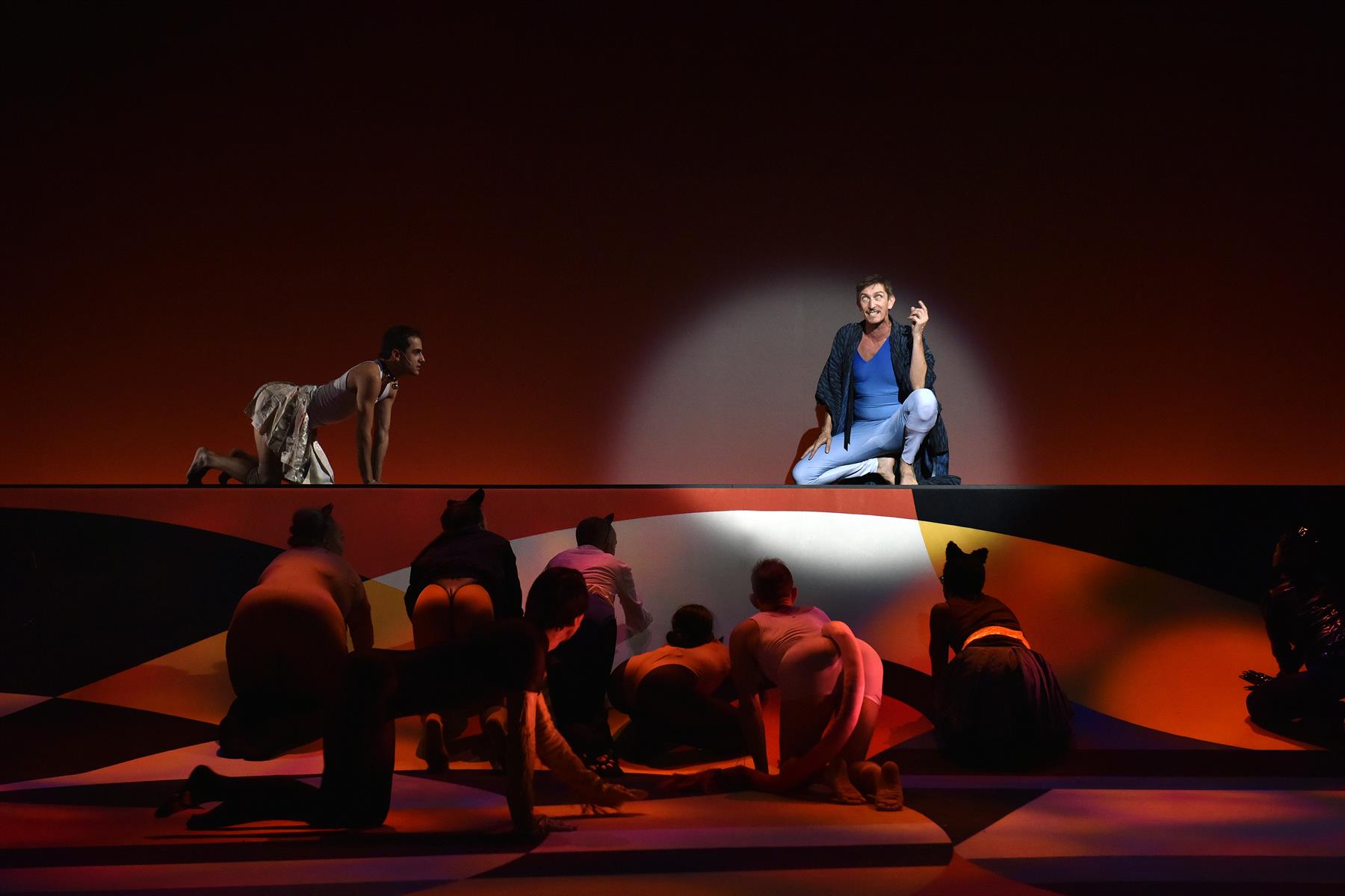Les interprètes de la comédie musicale Cats ont fui la société pour se réfugier dans leur litière, tant l’avenir de la planète leur semblait compromis. Entre la comédie musicale, l’opérette, le ballet, le modern-jazz et le kabuki, cette fable animalière prend forme dans un décor imaginé par l’artiste plasticien Théo Mercier.