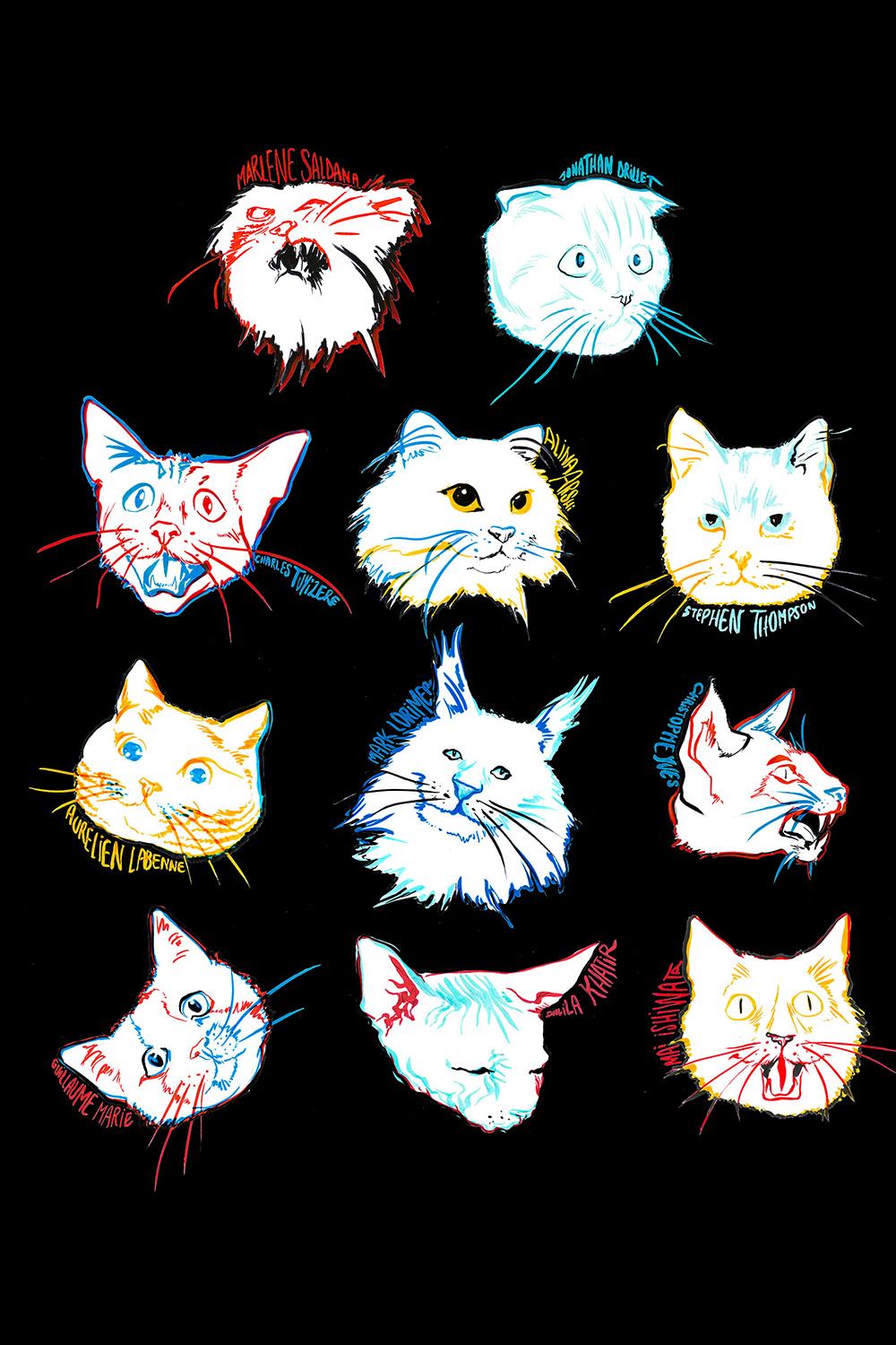 Comédie musicale sur les animaux humains et non humains, l’anthropocène et le climato-scepticisme, la montée de l’extrême droite et l’idée de la catastrophe, la résignation, l’accommodation, la satisfaction ou la rébellion, Les chats est un projet résolument trans-formes, à cheval entre théâtre, danse et chant, mais aussi entre anthropologie et zoomorphisme, entre ballet modern jazz, comédie musicale et danse minimaliste, entre aller-retours à la litière, jeux, toilette, et repos, sur une musique originale et poly-styliste du compositeur Laurent Durupt. Les interprètes de la pièce sont danseurs, danseuses ou acteurs et actrices de tous âges, réuni.e.s dans un espace scénographié par Théo Mercier, avec des costumes de Jean Biche et Vanessa Riera, des lumières de Fabrice Ollivier, le travail sonore de Guillaume Olmeta, la direction technique de Moustache, Céline Peychet à l’assistanat et la collaboration artistique, et la production est assurée par Fabrik Cassiopée, en collaboration avec Fougue.