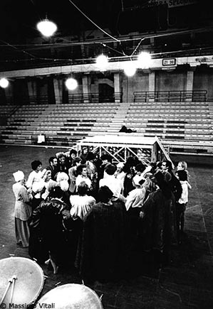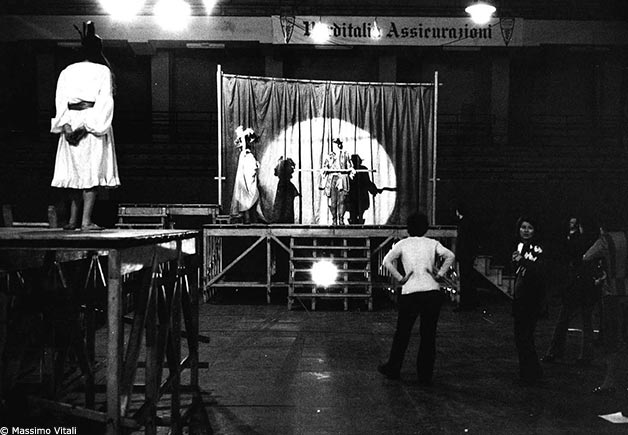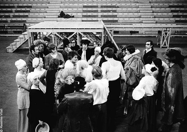 Créé en 1970 à Milan puis à la Cartoucherie, dans le Bois de Vincennes, 1789 marqua fortement les débuts du Théâtre du Soleil. Véritable oeuvre collective, elle met en scène la Révolution française, sous la forme d’un théâtre de tréteaux mené par des bateleurs dans un champ de foire. Lors de la représentation, une partie du public, debout au centre de l’espace scénique, faisait l’expérience d’une immersion dans l’Histoire et dans l’illusion du théâtre. La pièce fut jouée trois cent cinquante fois.