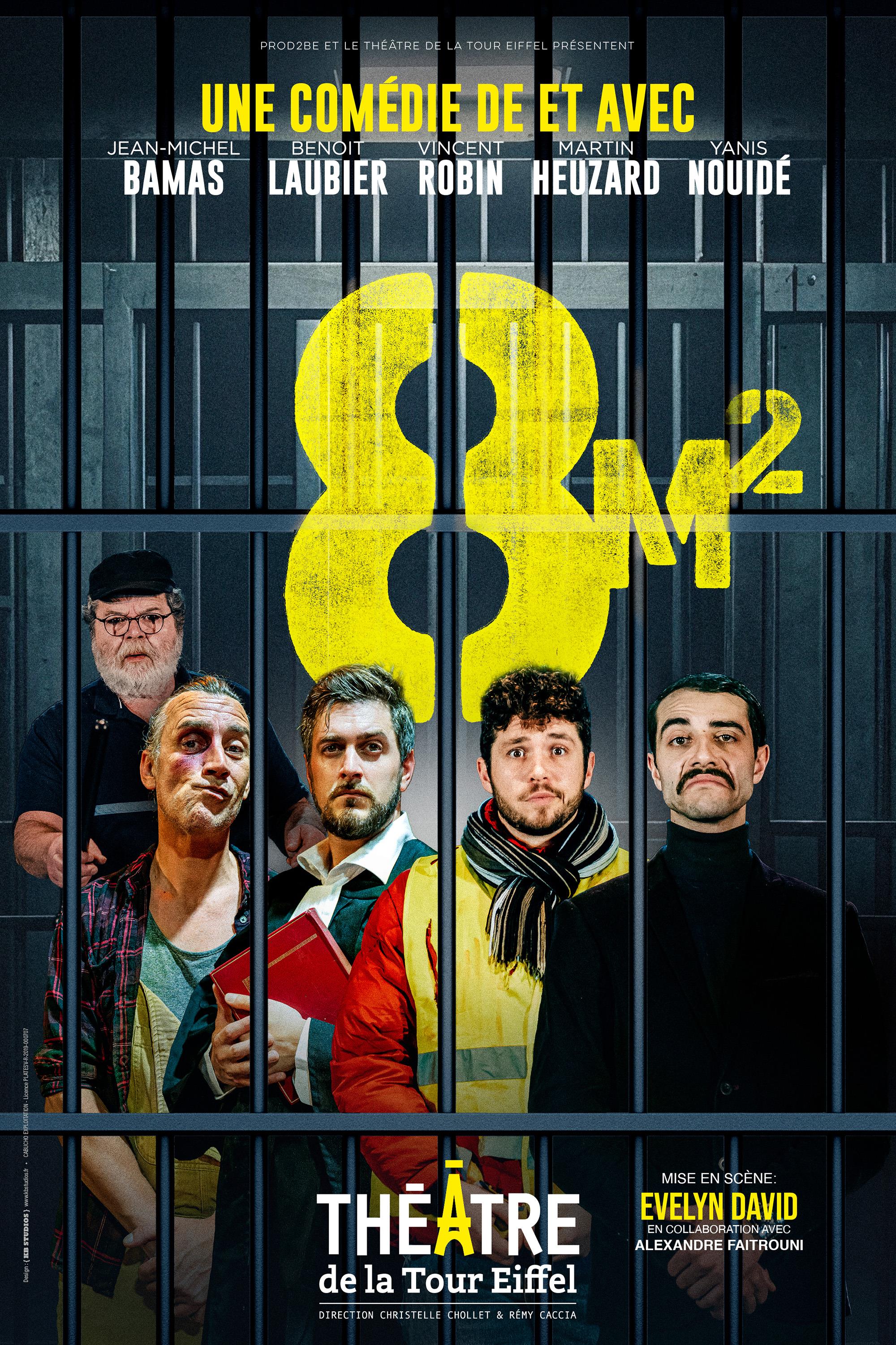 8 m2, c’est la grande évasion par le rire ! Enfermez-vous avec 4 types pas vraiment coupables, pas vraiment innocents non plus et un gardien accordéoniste qui tente de faire régner l'ordre coûte que coûte dans sa prison